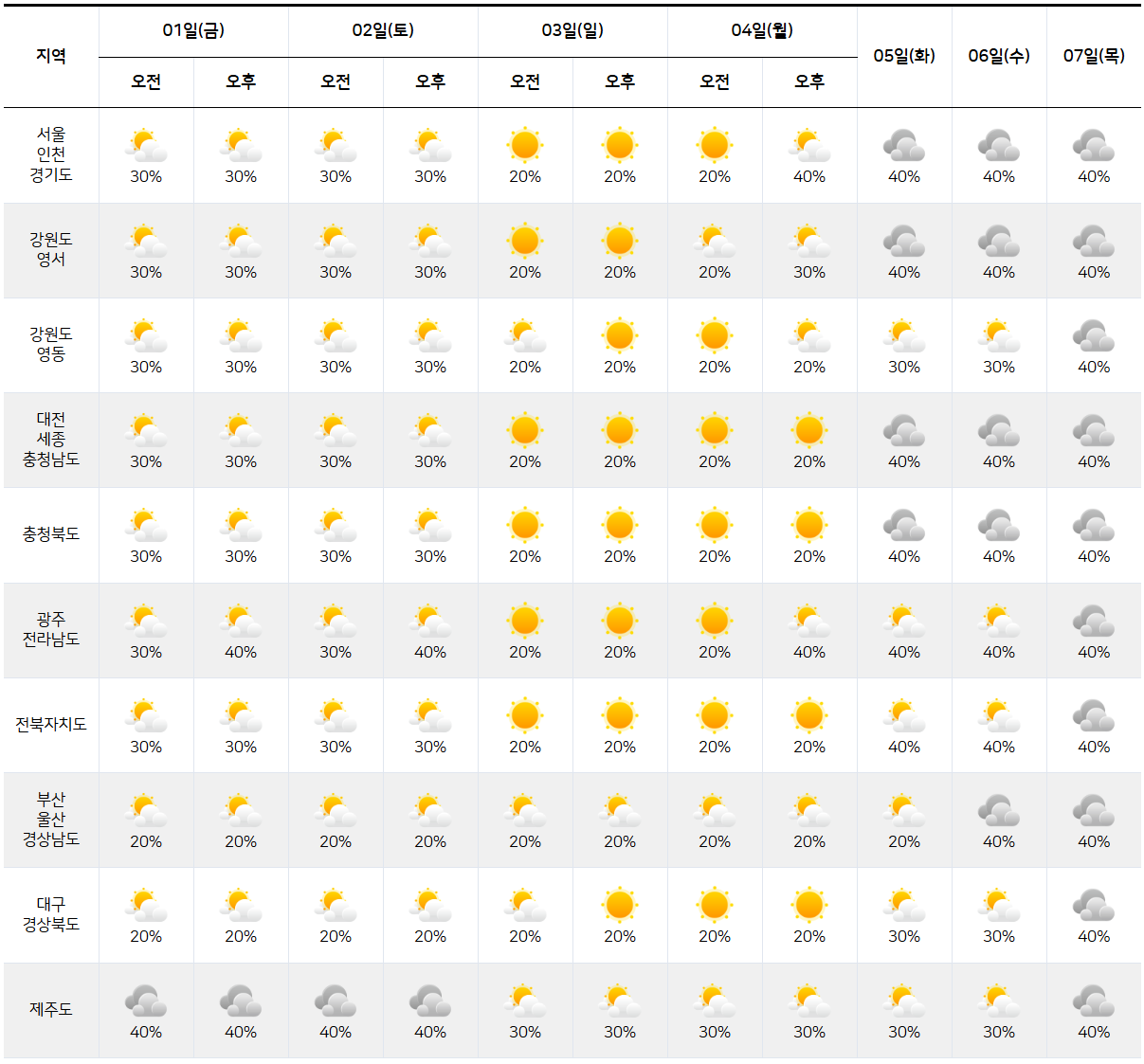 일일 날씨는 오전 오후로 나눠서 안내합니다.