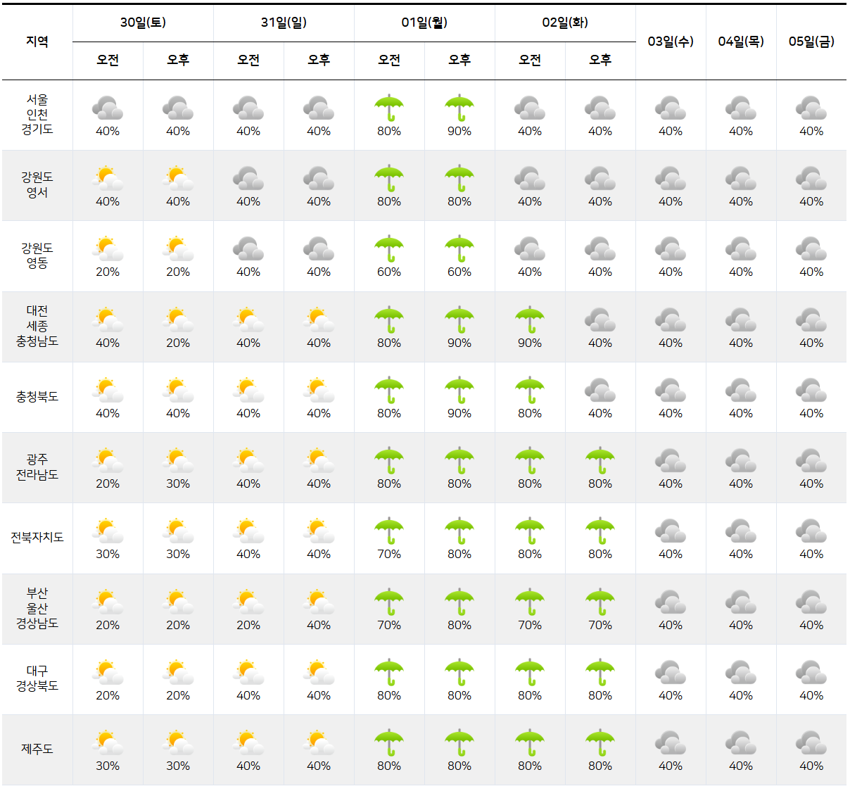 - 2025년 8월 30일 ~ 9월 5일 전국 날씨 예보